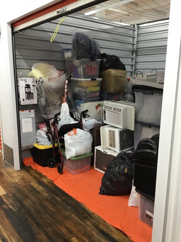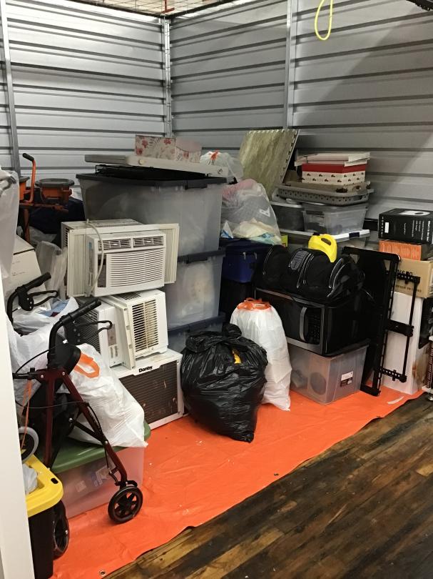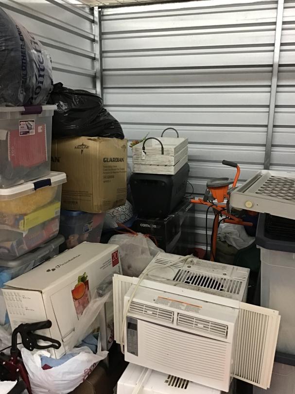 This unit appears to contain…10x10x13 Interior 1st Floor Street Level Heated, unit appears to have air conditioners, small kitchen appliances, totes, adult walker and other miscellaneous items