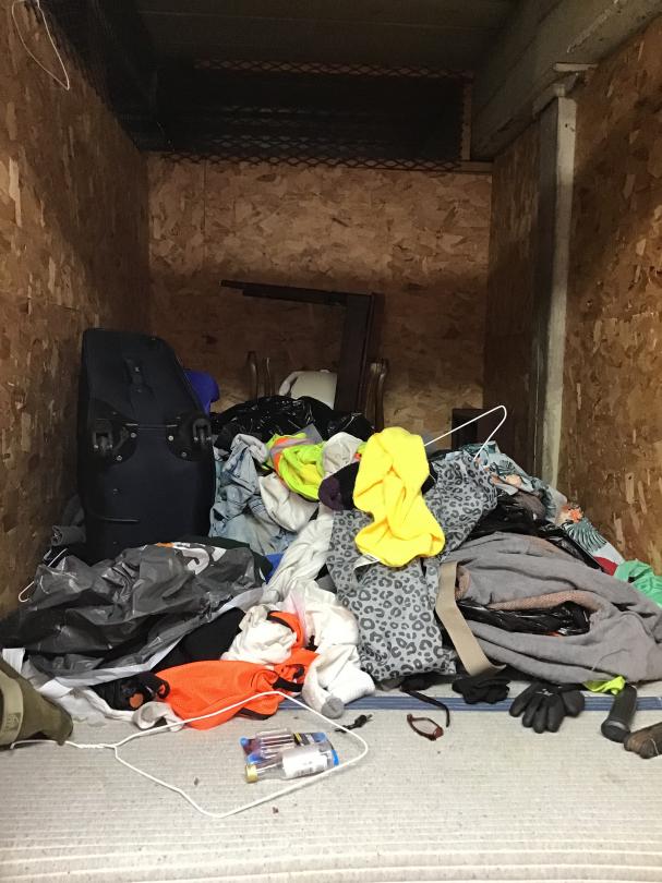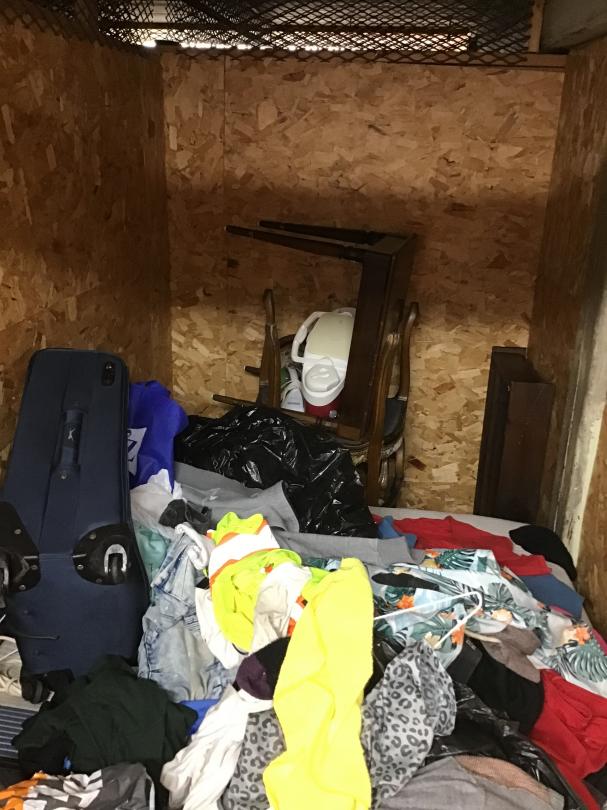 This unit appears to contain…5x9x6 Lockers Lower Level Upper Level Heated, unit appears to have a suitcase, clothes, furniture
