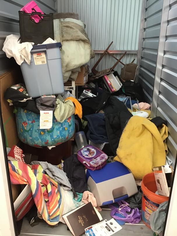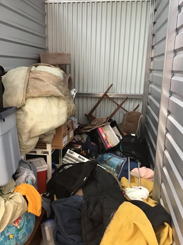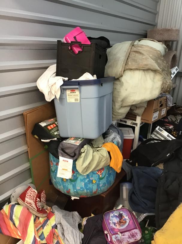 This unit appears to contain…5x10x8 Split Level 4th Floor Upper Level Climate, unit appears to have a cooler, tote, shoes, camping gear, cat tree and other household items