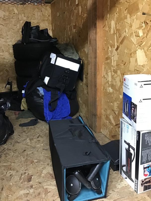 This unit appears to contain…5x9x6 Lockers Lower Level Upper Level Heated, unit appears to have bags and clothes