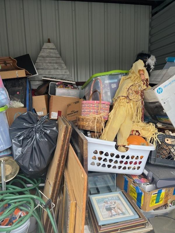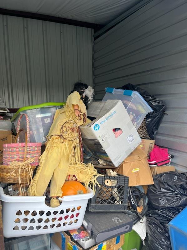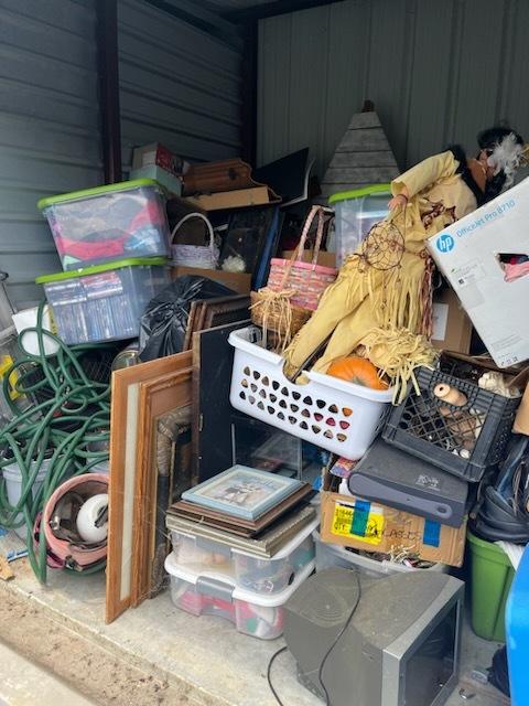 This unit appears to contain…Computer Equip., Landscaping Equip., Lamps, Decor, Plastic Bags, Plastic Containers, Misc. Boxes, Clothing, Misc. Items, Laundry Baskets and more...