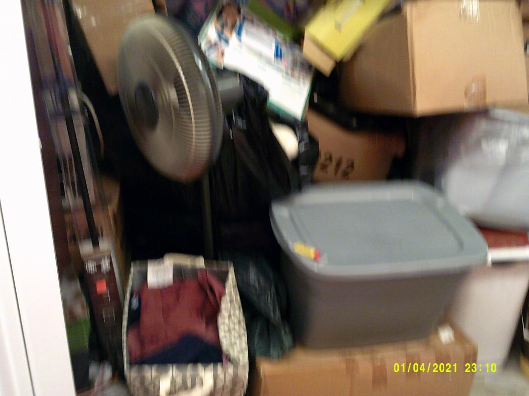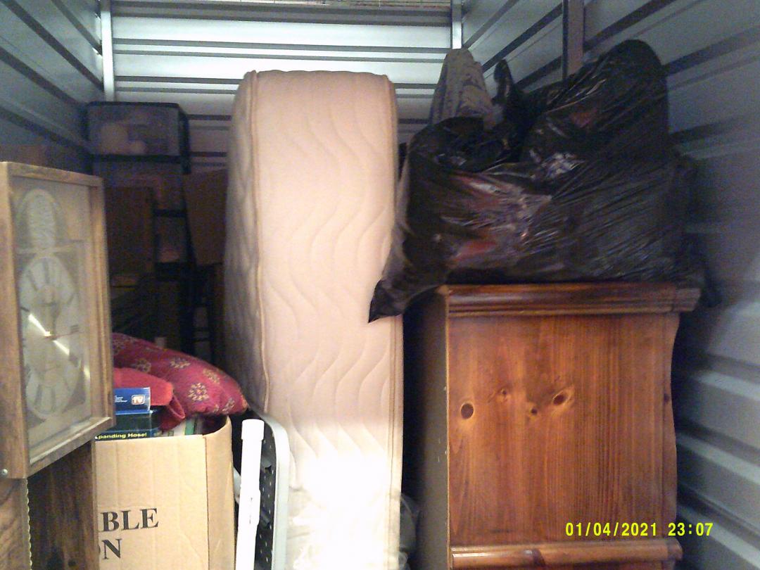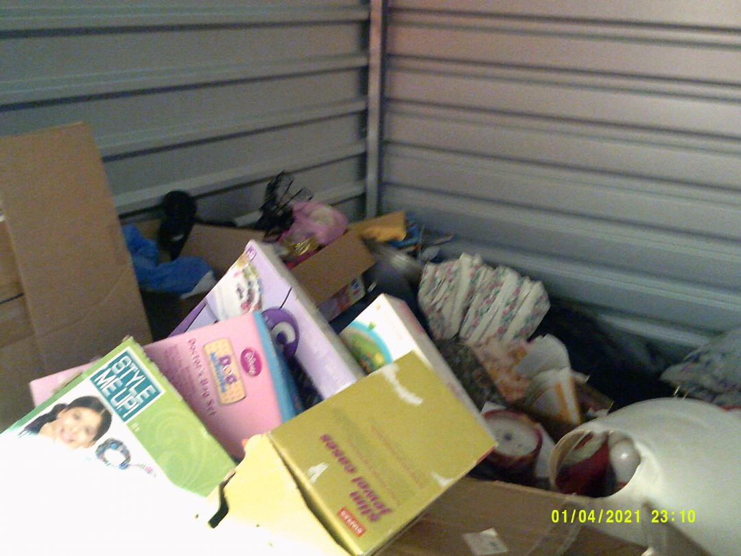 This unit appears to contain…READ ALL AUCTION RULES BEFORE BIDDING!!! Unit appears to contain: Dresser, sewing kit, totes, fans, boxes, a/c unit, toys, suitcase, ironing board, grandfather clock, Mattress, Sound system, bedroom set