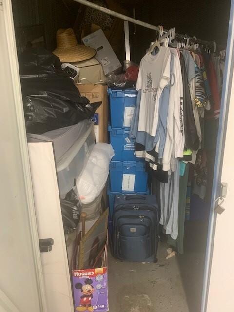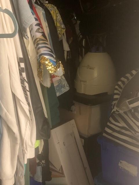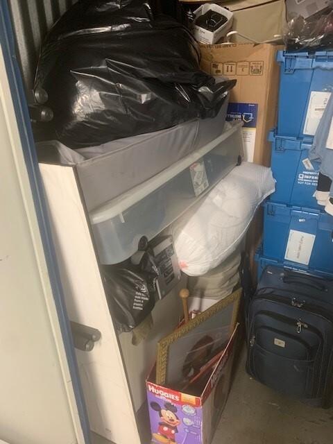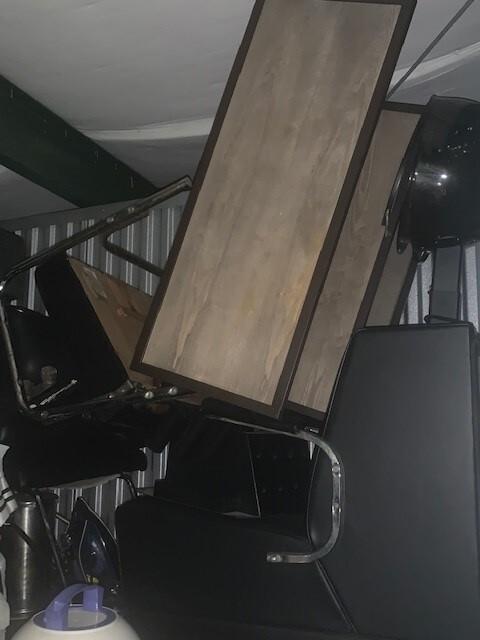 This unit appears to contain…BAGS, BOXES, CRATES, HAIR DRYER, HAIR DRYER CHAIR, SALON CHAIRS, STORAGE STAND, CLOTHES, MATTRESS, SUITCASES