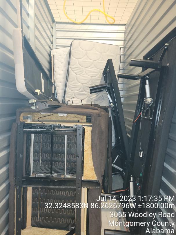 This unit appears to contain…Recliner or couch, mattresses, electric bed frame MAYBE. MISC