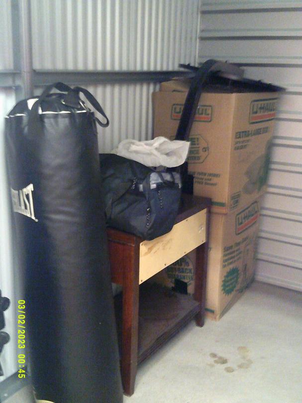 This unit appears to contain…READ ALL AUCTION RULES BEFORE BIDDING!!! Unit appears to contain: Tables, mattress, box spring, tv, boxes, punching bag