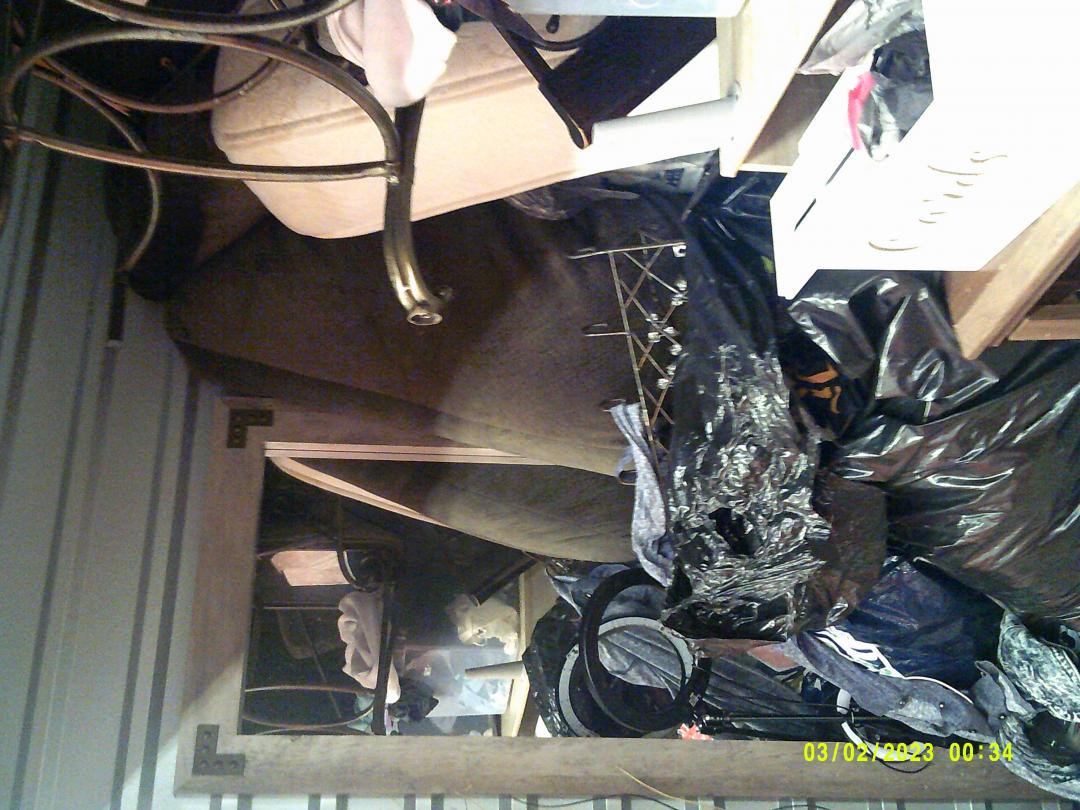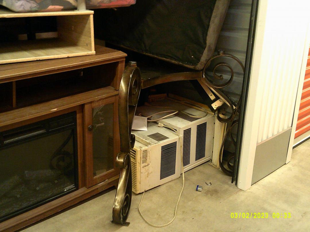 This unit appears to contain…READ ALL AUCTION RULES BEFORE BIDDING!!! Unit appears to contain: Couch, mattress, fireplace, a/c, clothes, chair, lamps, tv, mirror