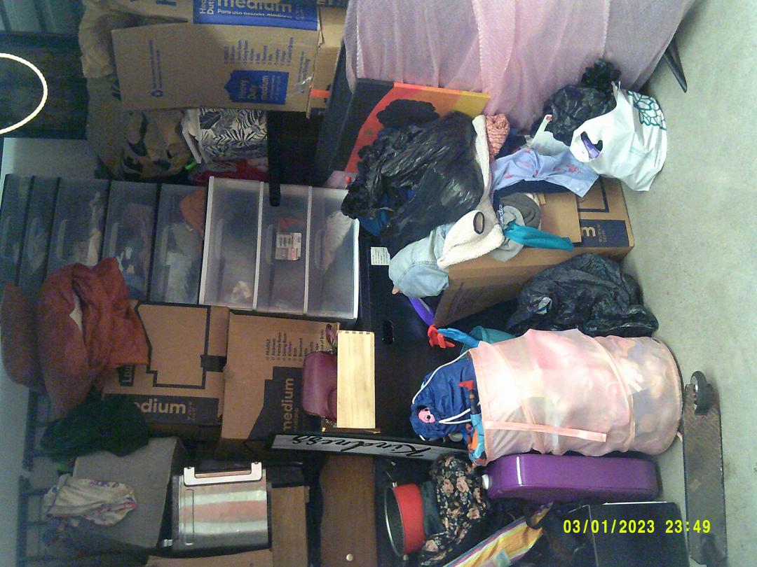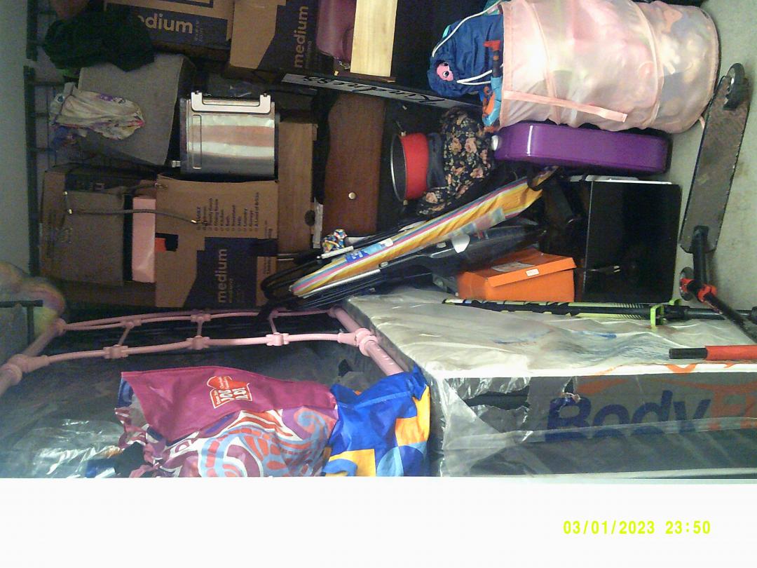 This unit appears to contain…READ ALL AUCTION RULES BEFORE BIDDING!!! Unit appears to contain: toaster oven, toys, shoe rack clothes, totes, tv, mattress, washer, shelves, purse, box spring