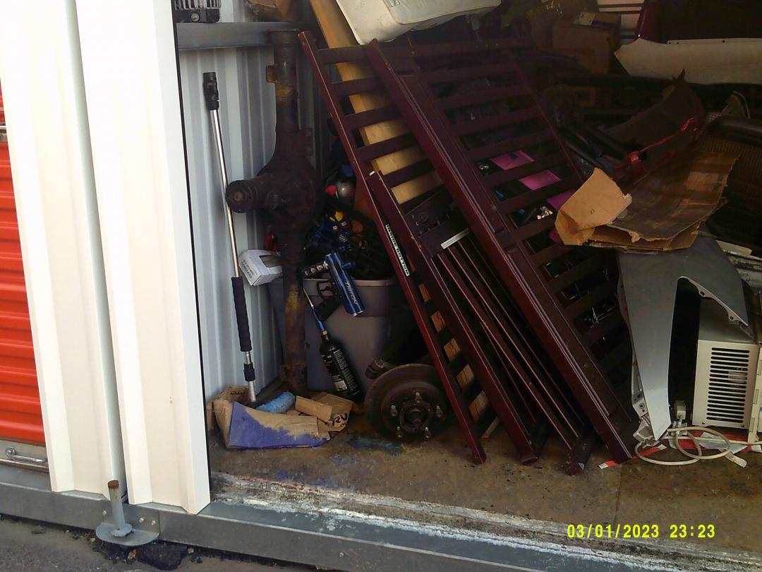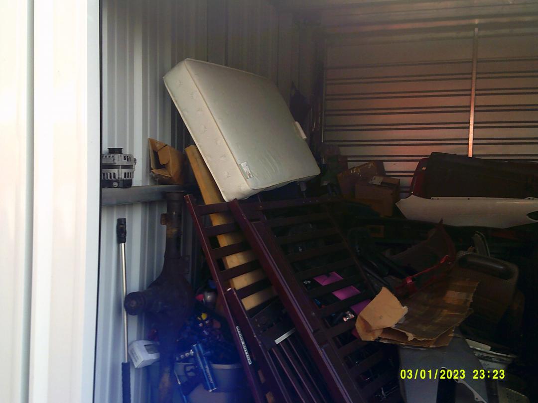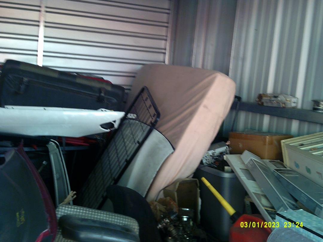This unit appears to contain…READ ALL AUCTION RULES BEFORE BIDDING!!! Unit appears to contain: Cooler, suitcase, car parts, a/c unit, bed frame, mattress, boxes, gas can, doll house