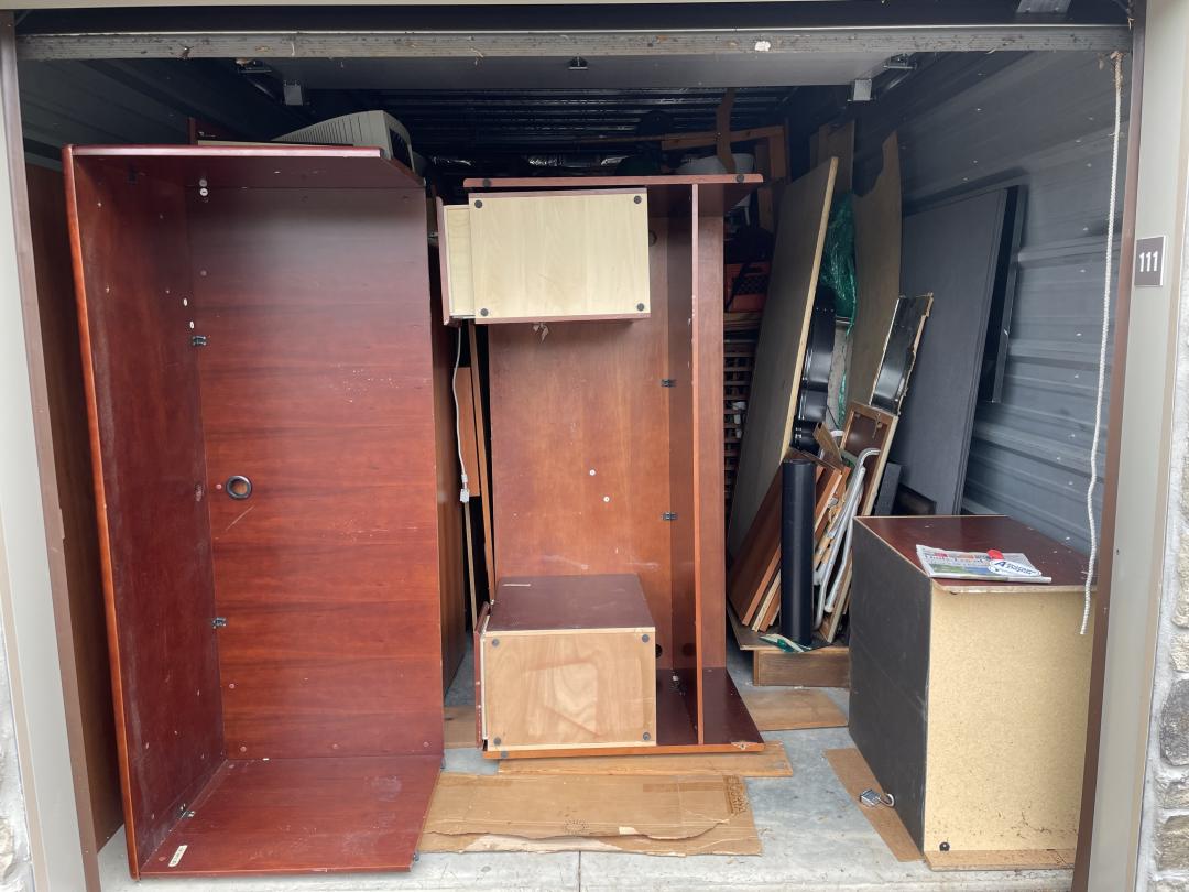 This unit appears to contain…Baby Items, Bedding, Bicycles, Clothing, Computer Monitor, Desk, Lamps , Office Furniture