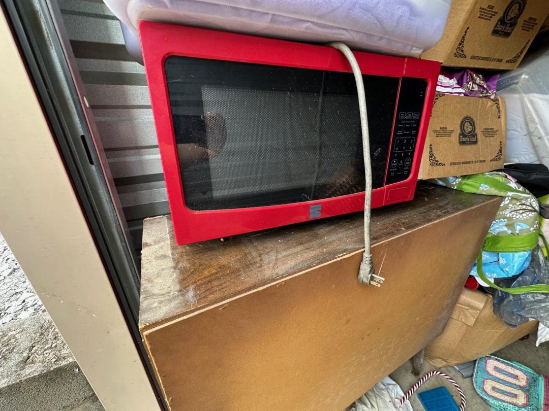 This unit appears to contain…Microwave,Plastic Bags,Plastic Containers,Misc. Boxes,Misc. Items