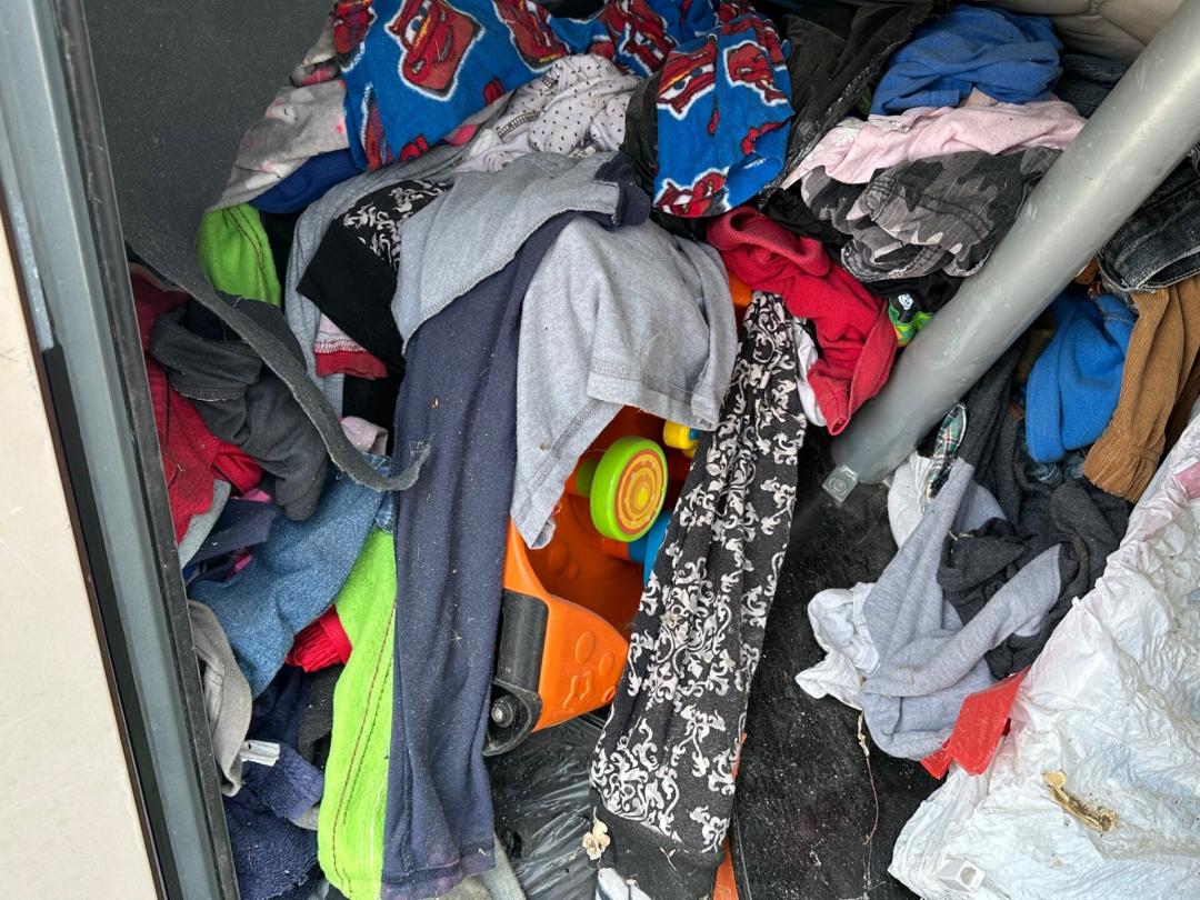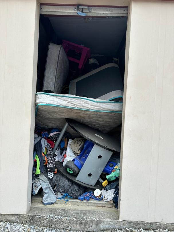 This unit appears to contain…Couches,Mattresses,Box Springs,TV Stand,Plastic Bags,Misc. Boxes,Clothing,Misc. Items,Toys