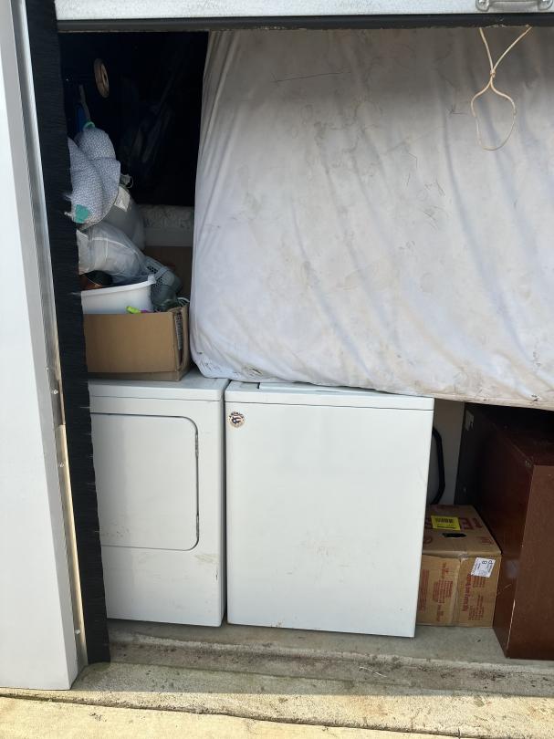 This unit appears to contain…See pics! Washer/dryer, mattress, chairs