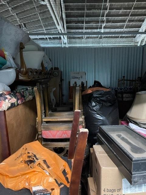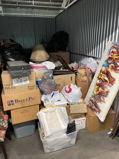 This unit appears to contain…Dresser, bags, lamps, chairs, pictures, boxes, tables, toys