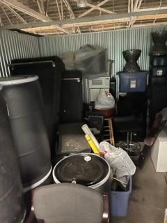 This unit appears to contain…Bar, bar stool, microwave, couch, chairs, totes, cabinets, mirror, rain barrels