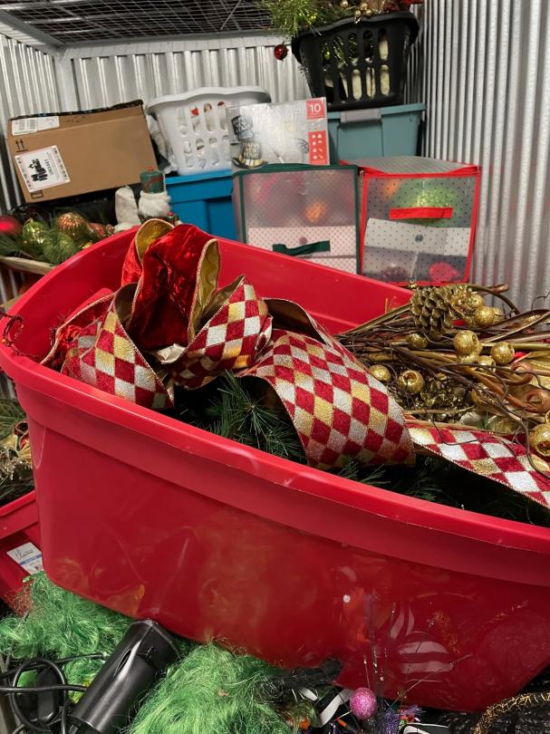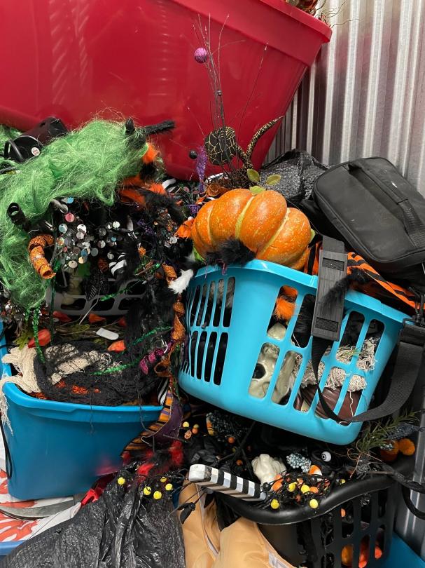 This unit appears to contain…Climate Controlled First Floor - Christmas decorations, Halloween decorations, totes, pictures, garbage bags, boxes, laundry basket