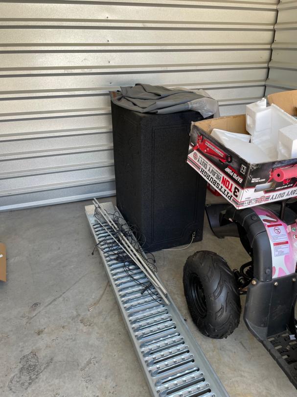 This unit appears to contain…Drive-Up Storage - 4 wheeler, car ramps, bumper, speaker
