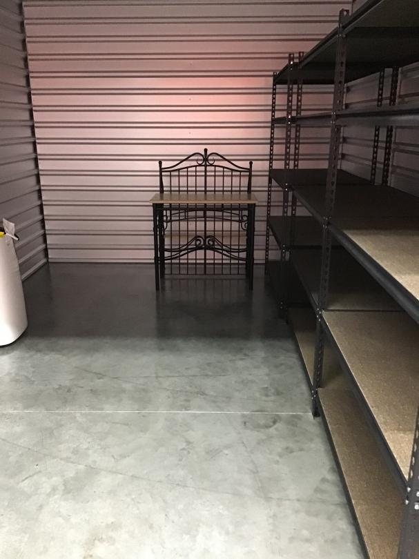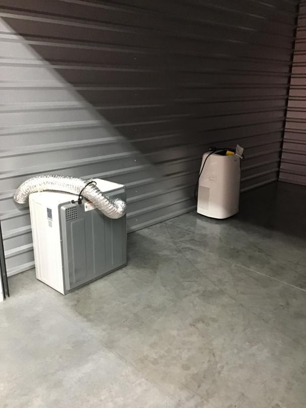 This unit appears to contain…10x15x10 Interior 1st Floor Street Level Climate, unit appears to have shelving units, floor air conditioner and a desk
