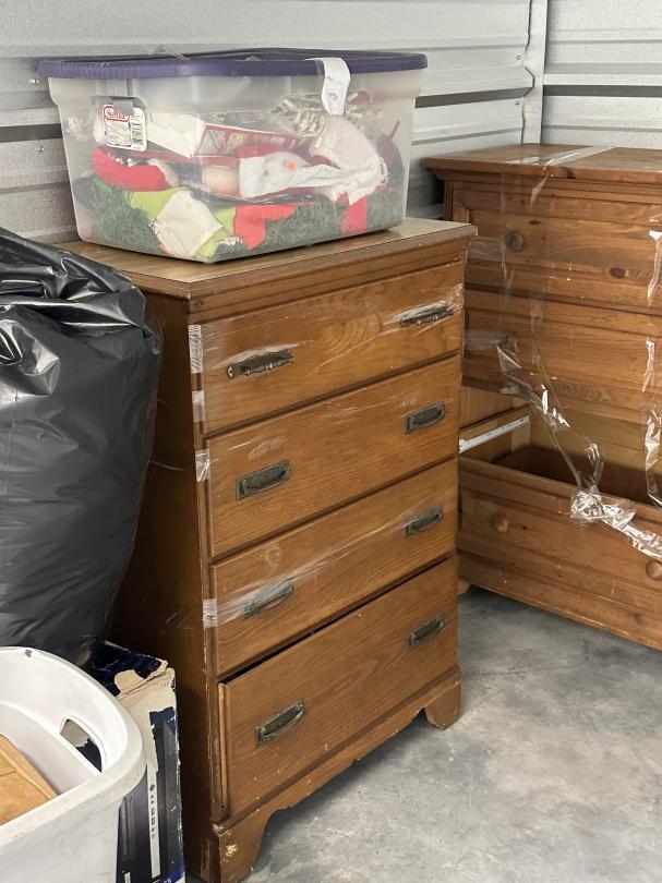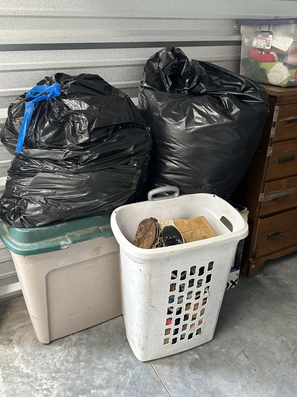This unit appears to contain…Furniture, bags, box, plastic tub, basket