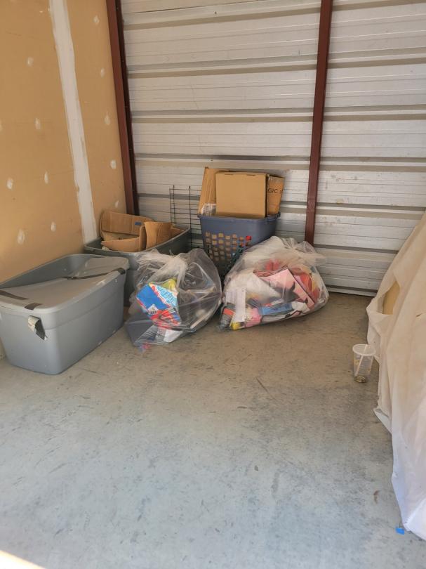 This unit appears to contain…Mattresses, Box springs, Bed Frames, Plastic Bags, Plastic containers