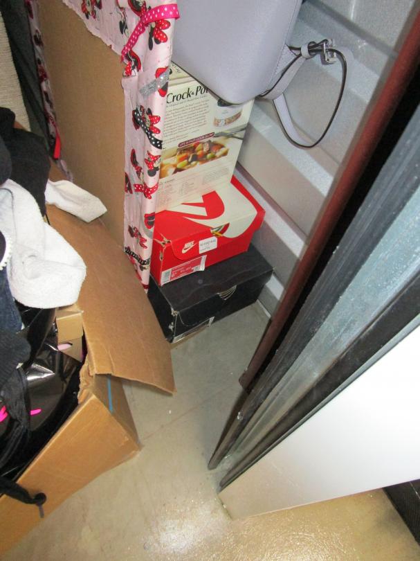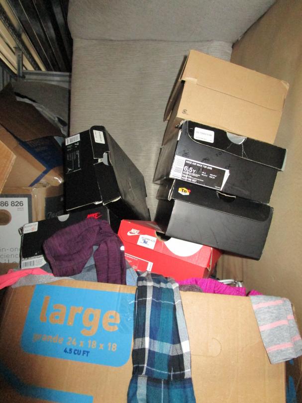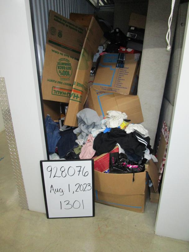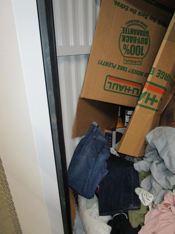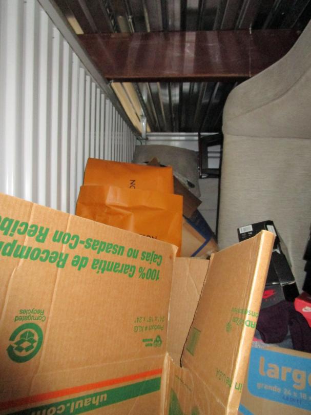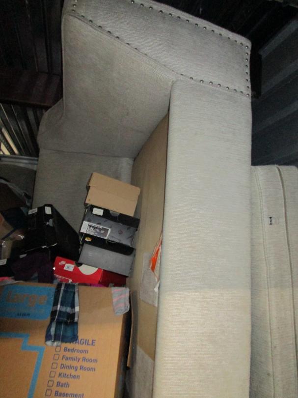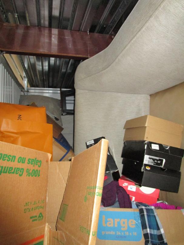 This unit appears to contain…5+ boxes, sofa, clothes, shoes, bar stool, crock pot, bedding
