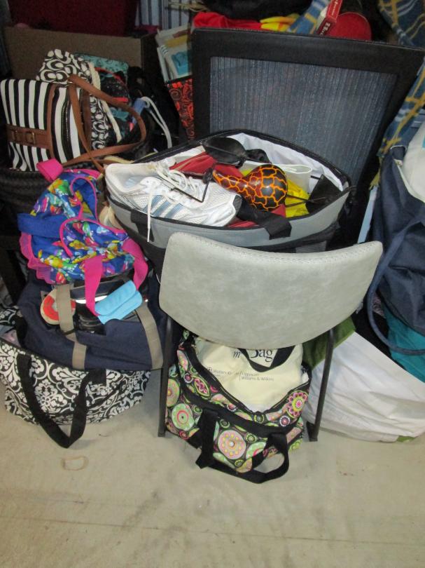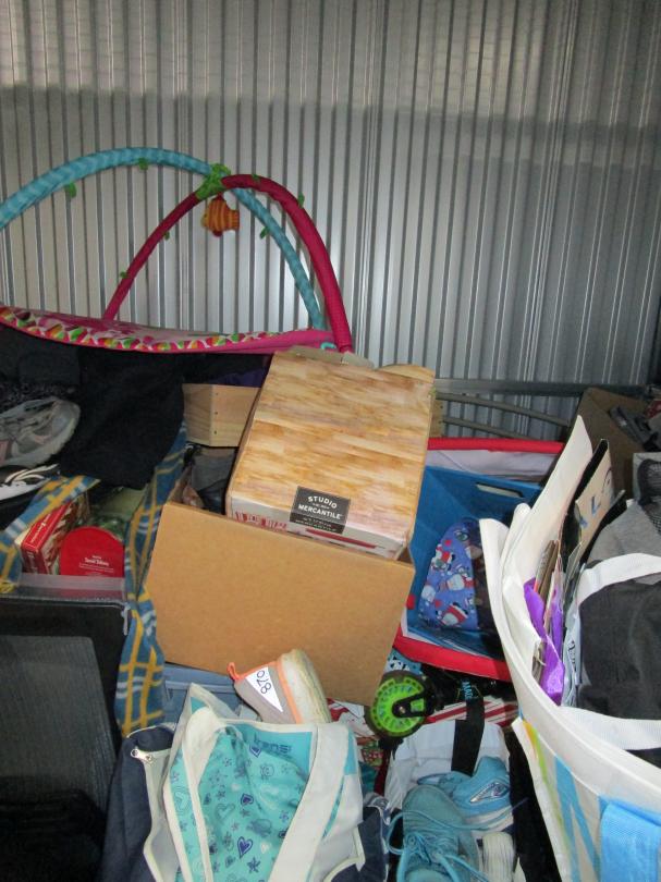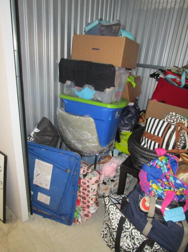 This unit appears to contain…Baby toys, coffee table, humidifier, dining chairs, office chairs, 4+ totes, 10+ bags, purses