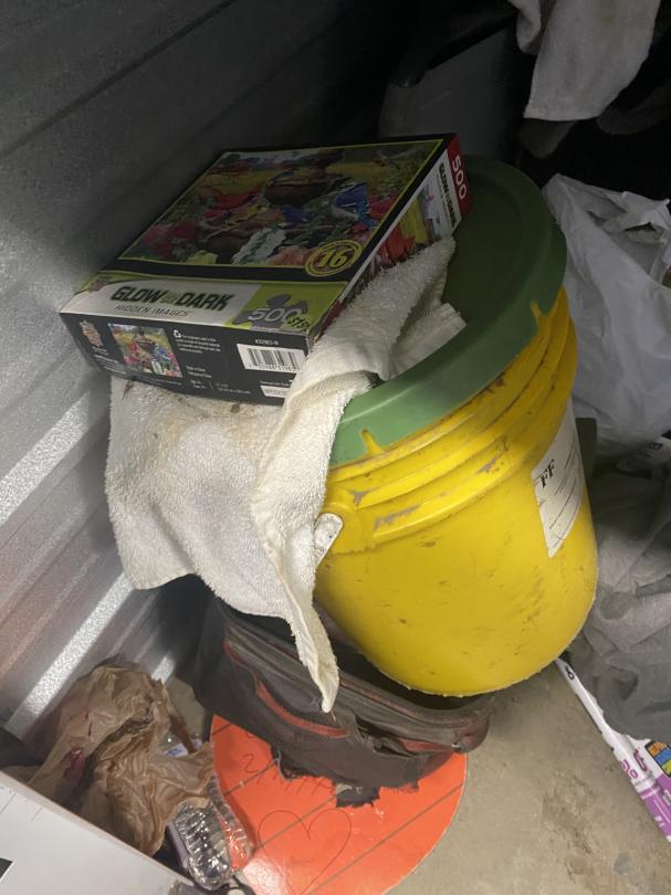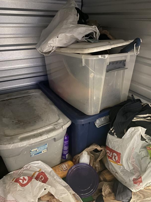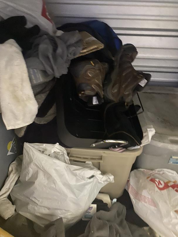 This unit appears to contain…Bins, Bags, Boots, CLothes, Bags, Puzzle, Bucket
