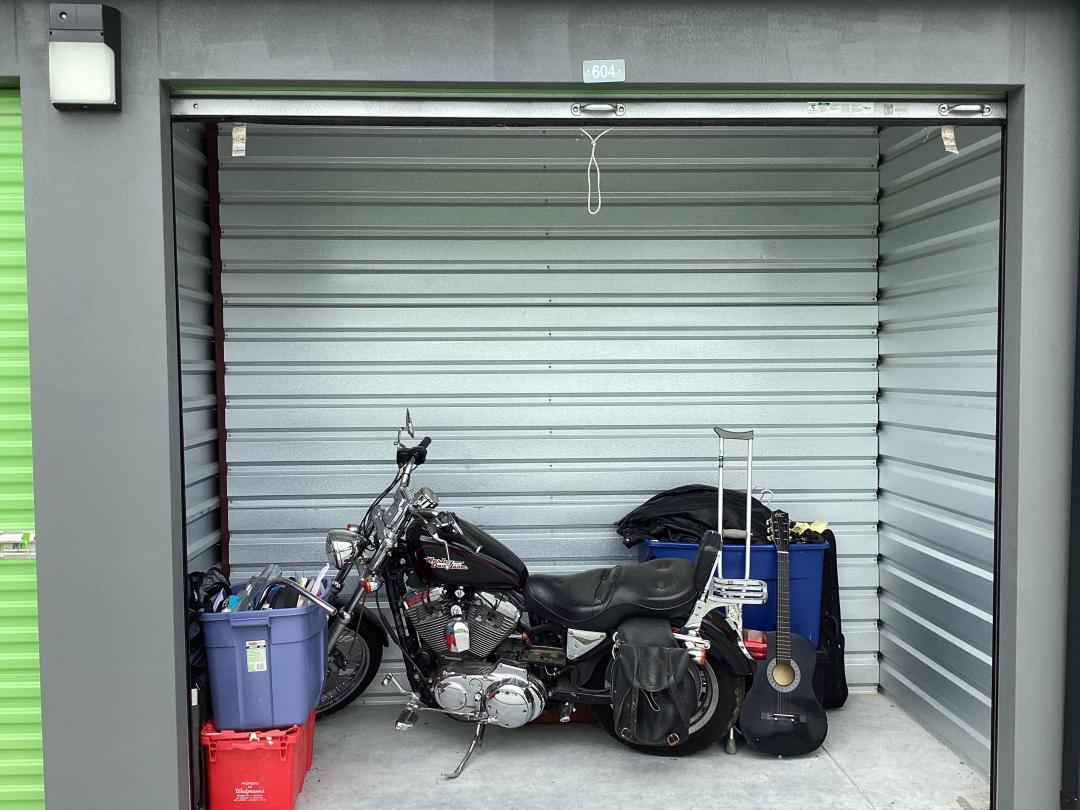 This unit appears to contain…8' Wide Door, Drive Up, Non-Climate Controlled, Roll Up Door. The MOTORCYCLE IS NOT FOR SALE!