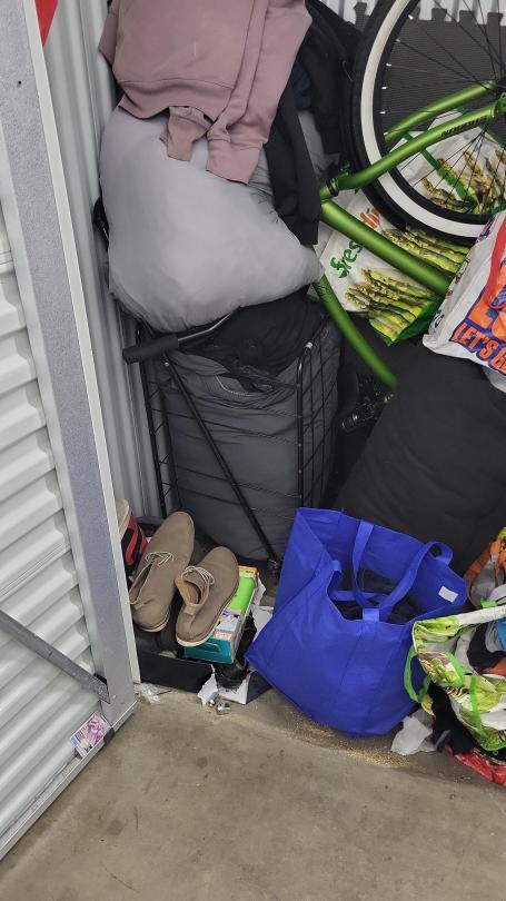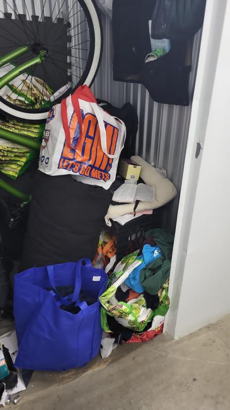 This unit appears to contain…Bags,Bike,Boxes,Clothes,Shoes, Shoping Cart