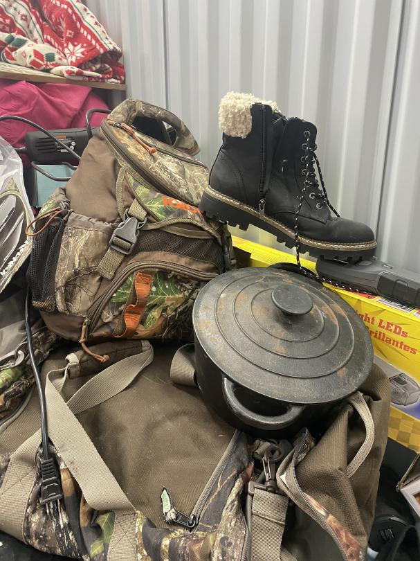 This unit appears to contain…Drive-Through Heated Bat, phone, close, bag, boots, toolbox, backpack, close basket, toys Lamps, Ladder, Kid items, Tackle box, clothes
