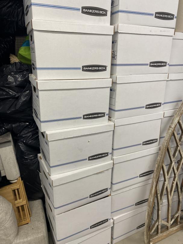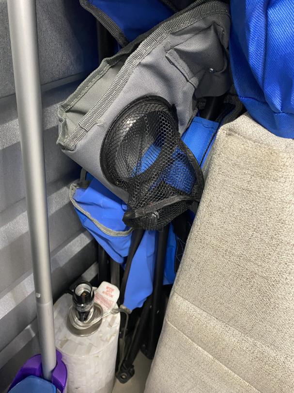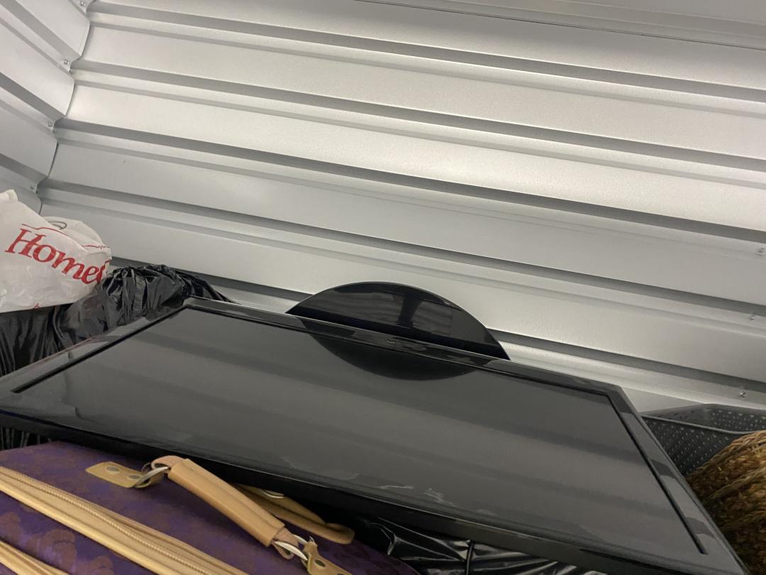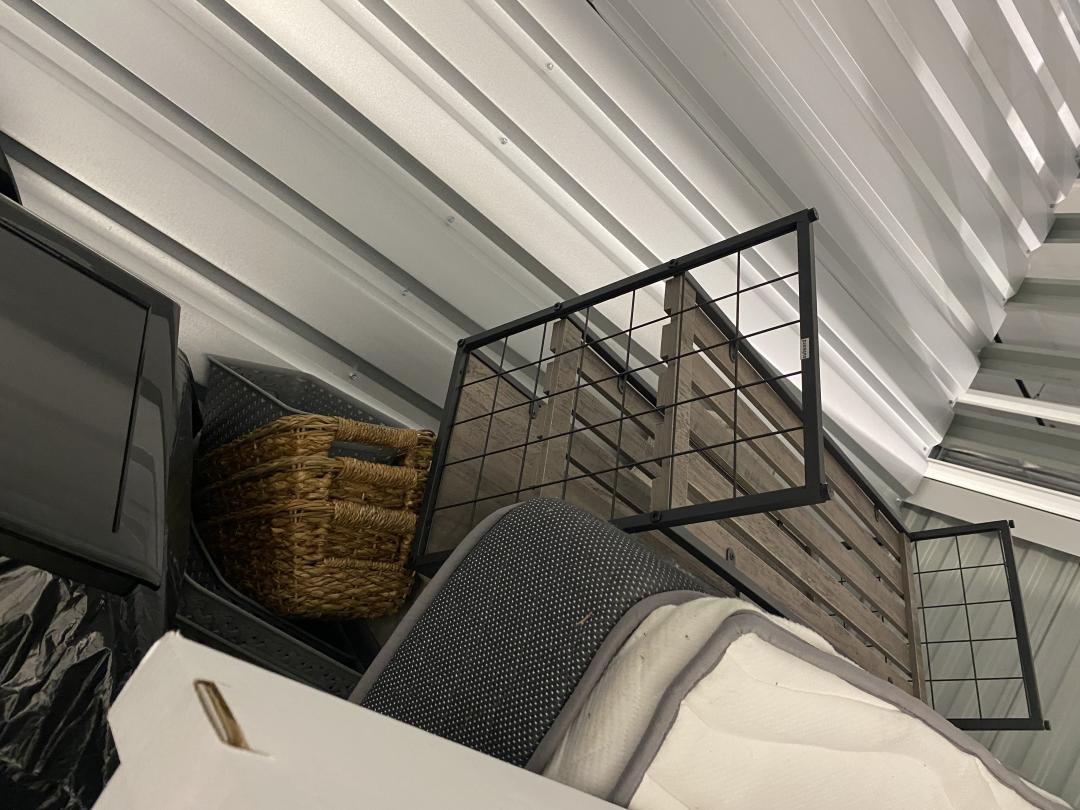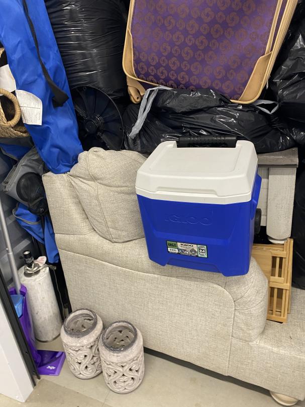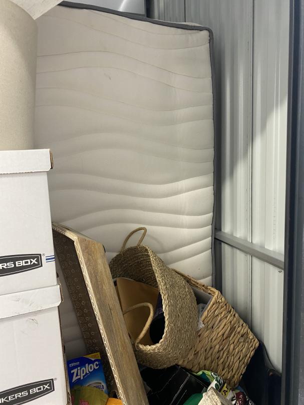 This unit appears to contain…Decorations, Boxes, Basinets, Shelf, Mattress, Suitcase, Furniture, Bags, TV, Fan, Lamp, Camping Chair, Table, Cooler.