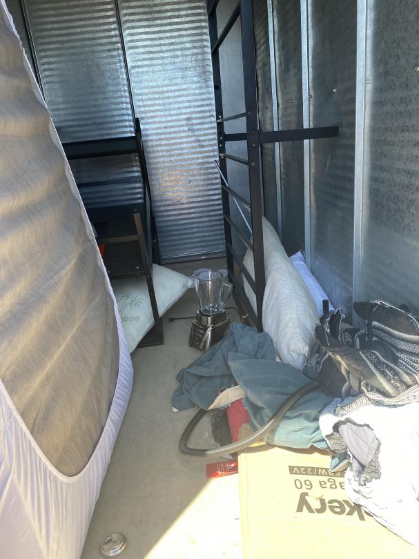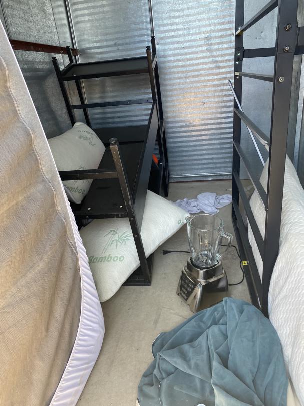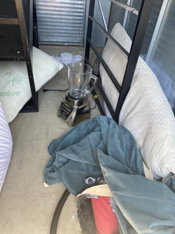 This unit appears to contain…Drive Up Blender, Bed Frame, Mattress, Shelf, Air Mattress and Pump