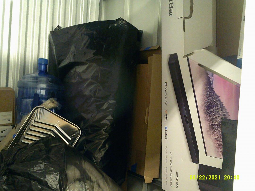 This unit appears to contain…READ ALL AUCTION RULES BEFORE BIDDING!!! Unit appears to contain: Sound equipment, sink, boxes, bags, dolly