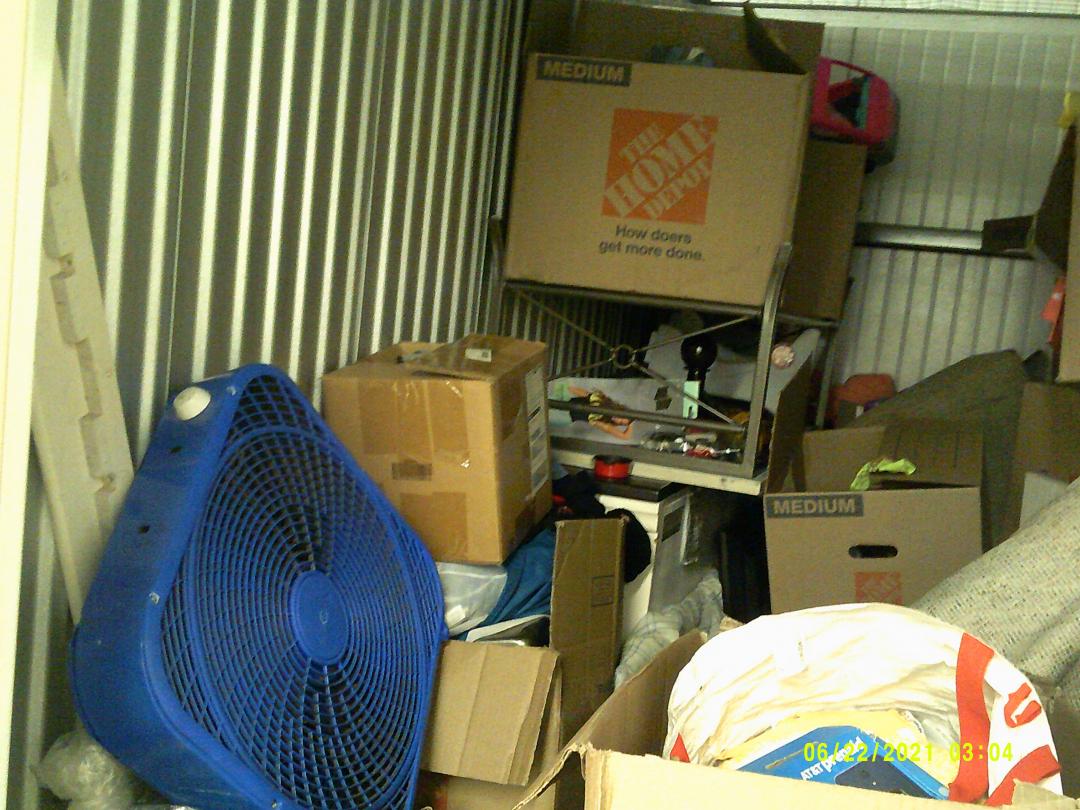 This unit appears to contain…READ ALL AUCTION RULES BEFORE BIDDING!!! Unit appears to contain: boxes, totes, chairs, table, fan