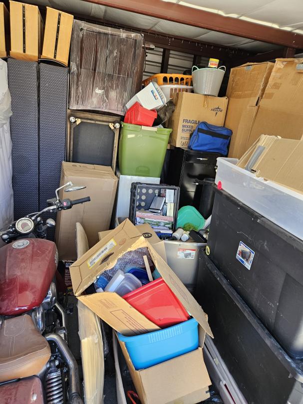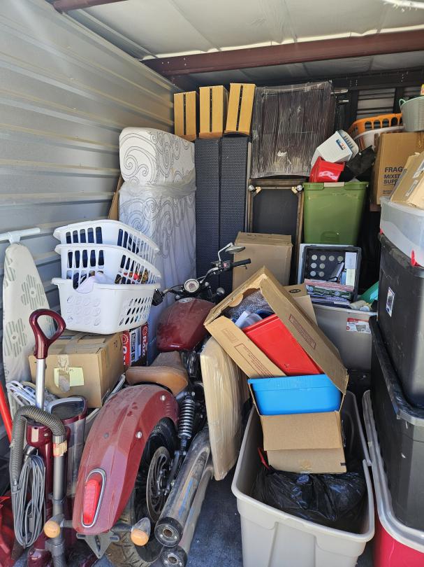 This unit appears to contain…Household goods only, Motorcycle NOT included in auction!