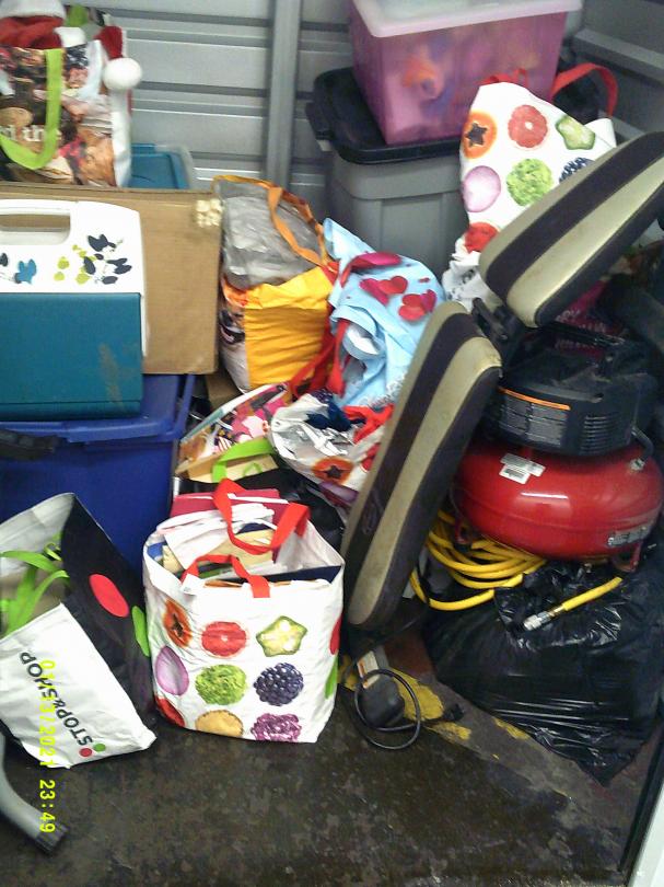 This unit appears to contain…READ ALL AUCTION RULES BEFORE BIDDING!!! Unit appears to contain: Totes, bags, boxes, Air compressor, workout gear