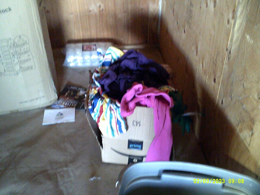 This unit appears to contain…READ ALL AUCTION RULES BEFORE BIDDING!!! Unit appears to contain: clothes, table, boxes, books