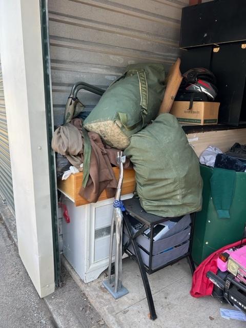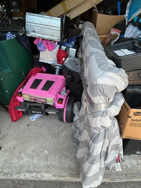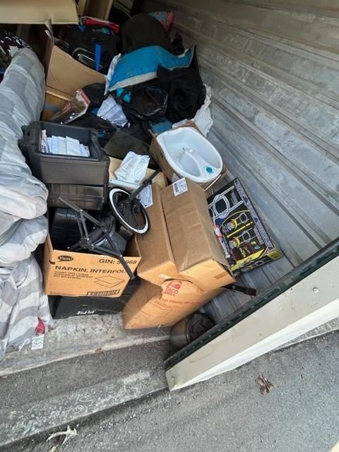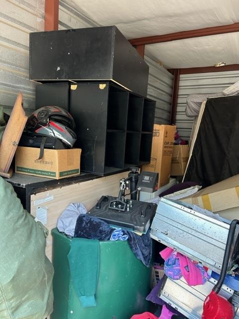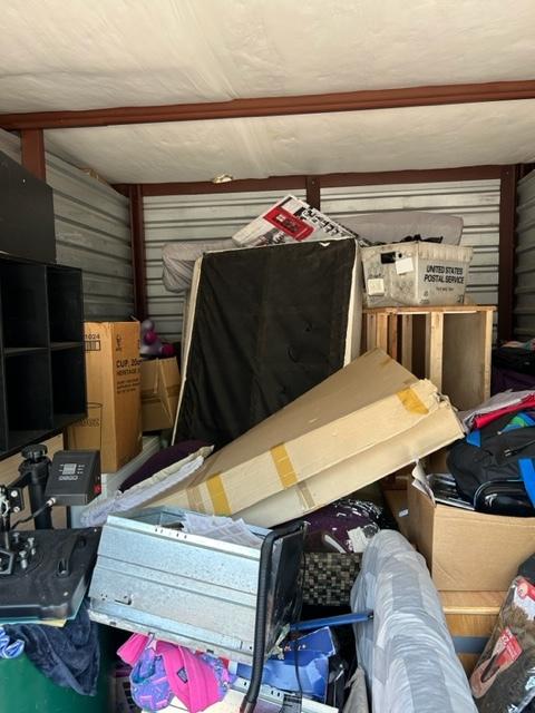 This unit appears to contain…Dressers, washer, dryer, book shelves, TV, Twin and queen mattresses and box springs, kids toys, bedding, clothing, beauty products, file cabinet, pacman stool, 3 portable safe boxes, power wheels jeep, xbox 360, home decor, folding chair, boxes and totes.