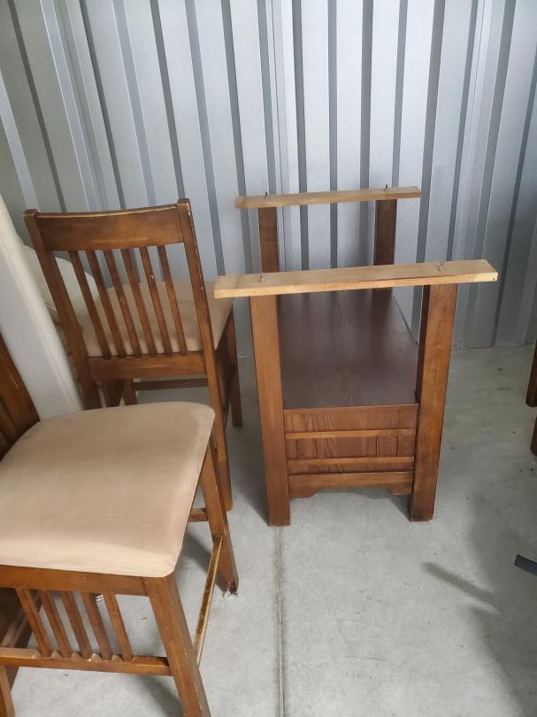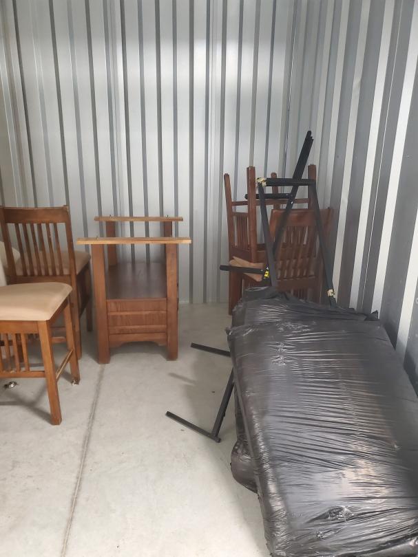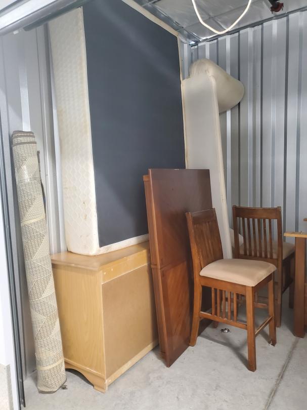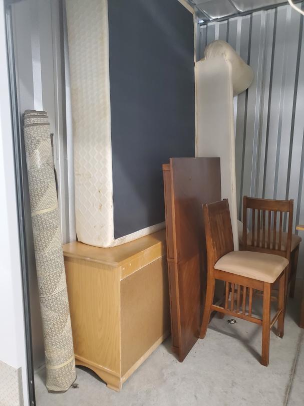 This unit appears to contain…Tables and chairs, mattress and couch.