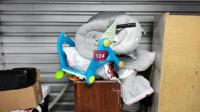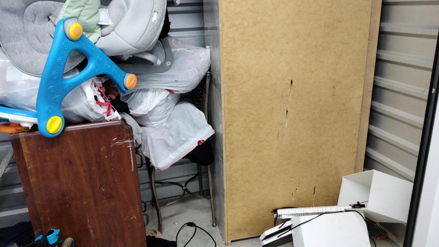 This unit appears to contain…Dresser, lamp, Electric Fireplace, vacuum, Clothes , Baby Stuff