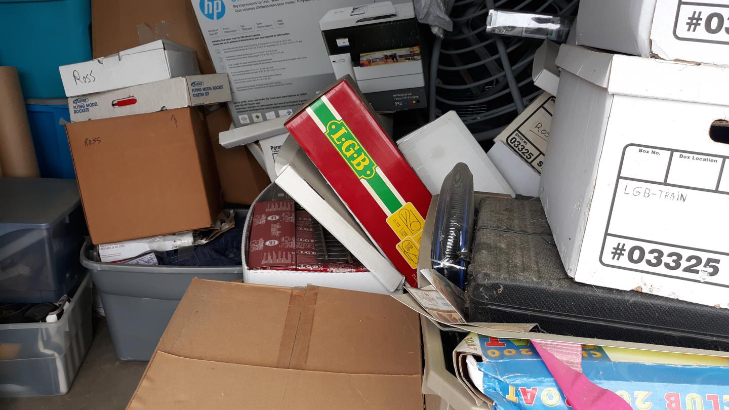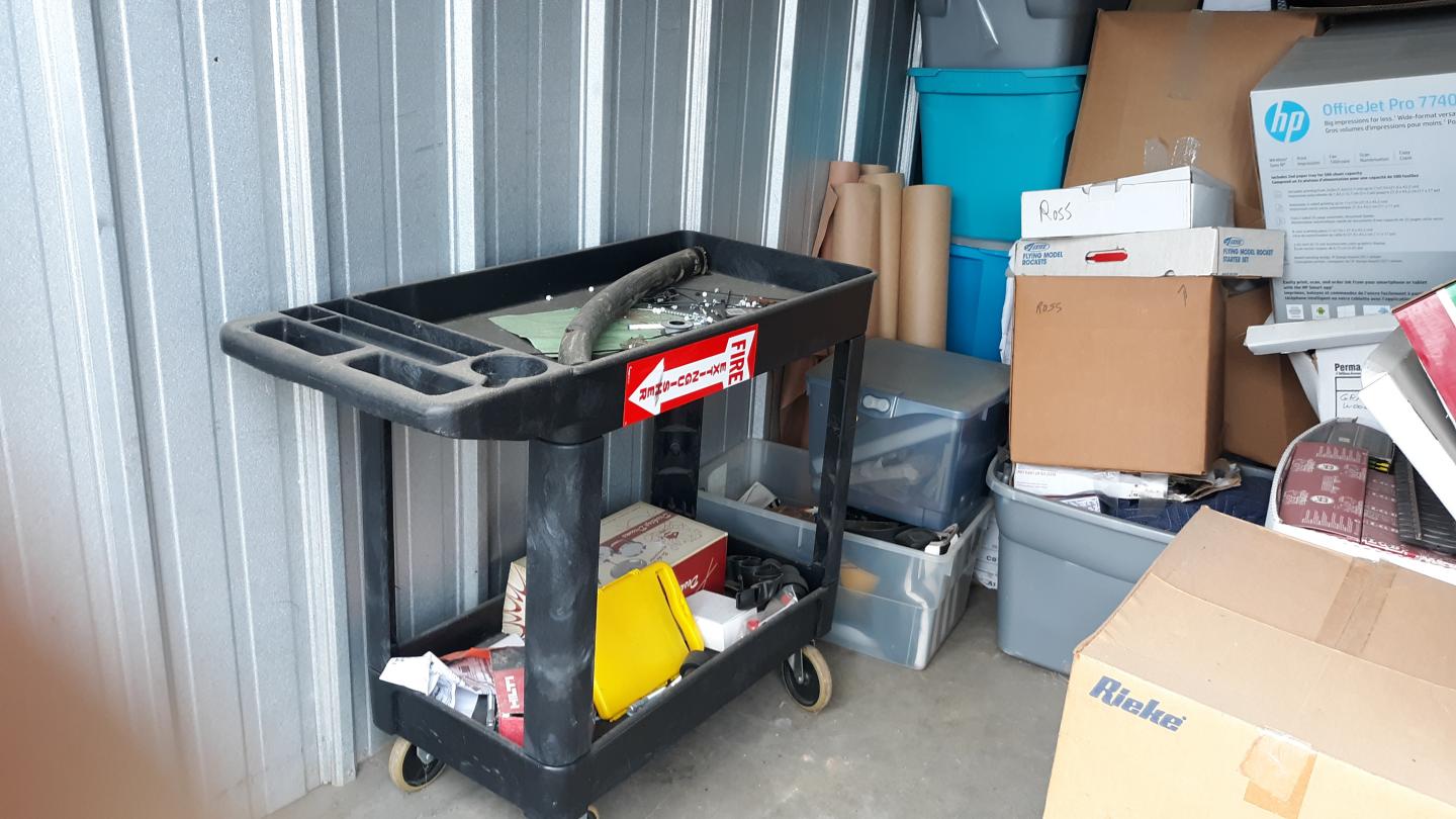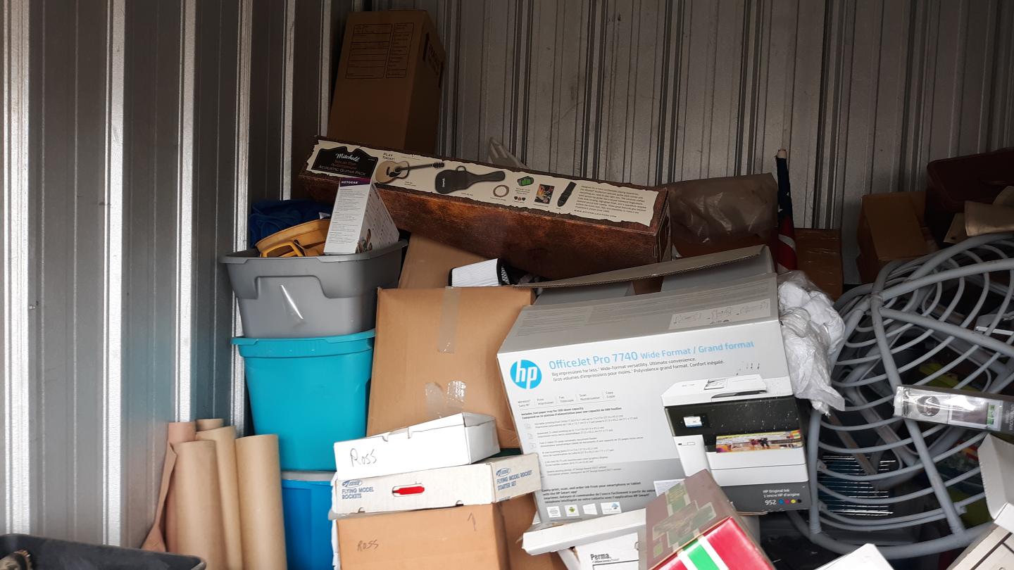 This unit appears to contain…tools, Chairs, Decor, Plastic Bags, Plastic Containers, Misc. Boxes, Toys, Misc. Items