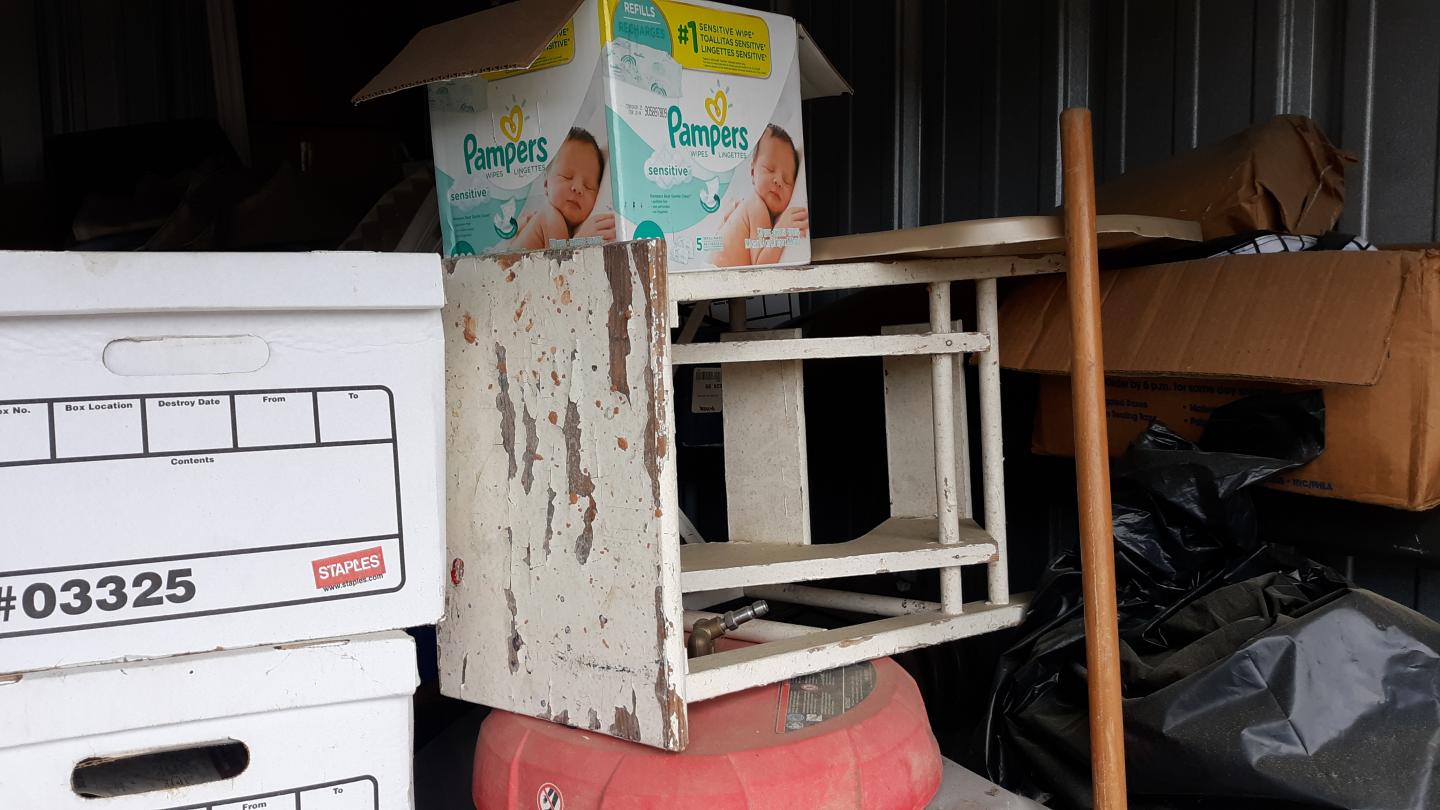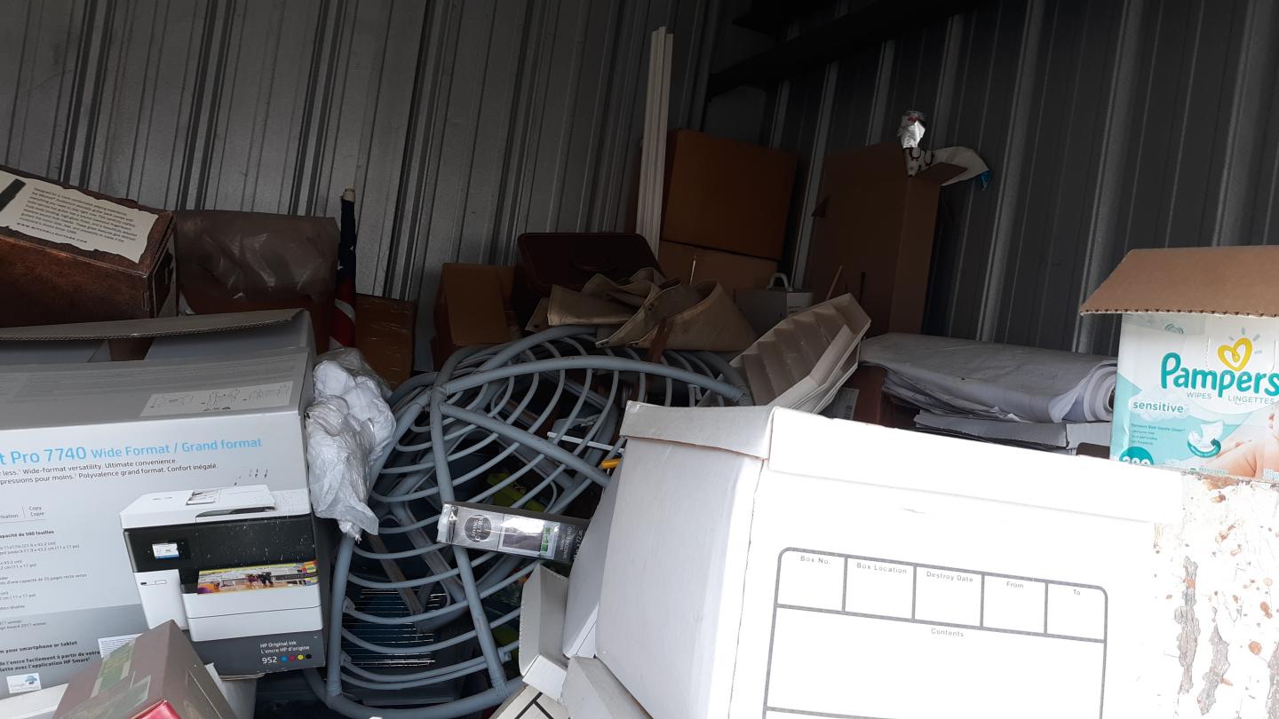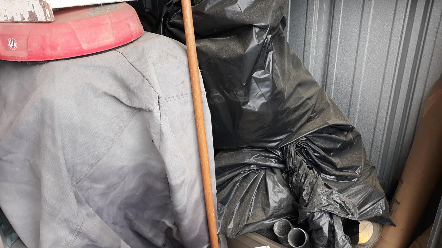 This unit appears to contain…tools, Chairs, Decor, Plastic Bags, Plastic Containers, Misc. Boxes, Toys, Misc. Items