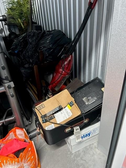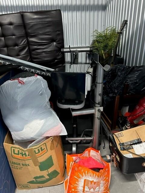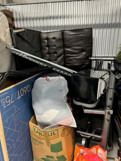 This unit appears to contain…Couch, mattress, microwave, guitar, vacuum, weight bench, rug, ironing board, end table