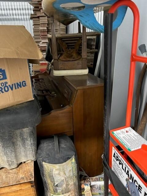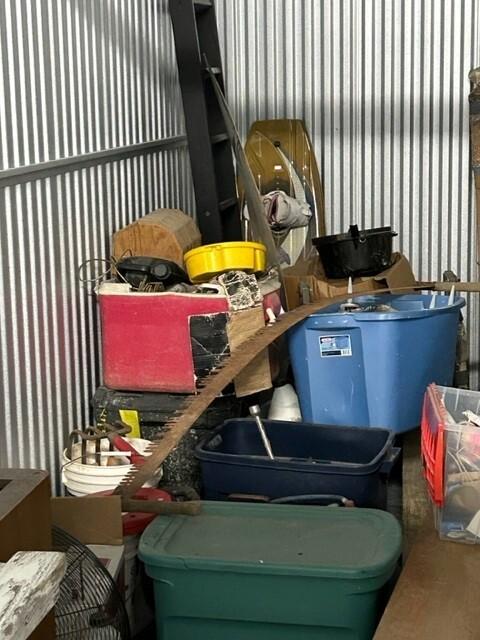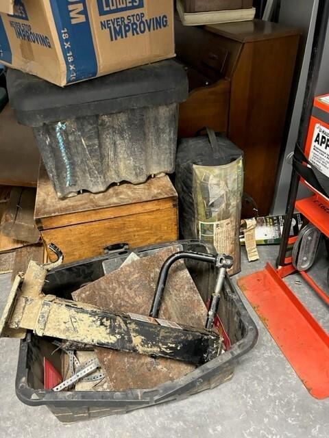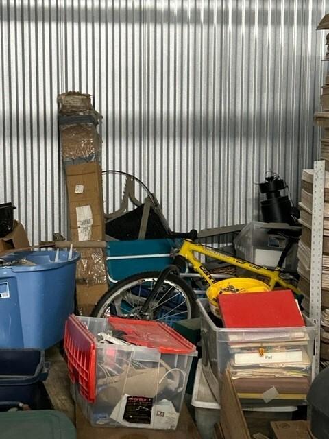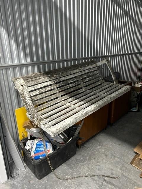 This unit appears to contain…Swing, dolly, boxes, Piano, chest, Jack, grinder, tools, totes, old wood, tent, crutches