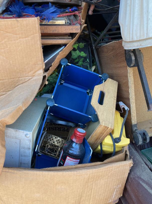This unit appears to contain…TV, Lamps, Chairs, Decor, Plastic Bags, Misc Boxes, Misc Items