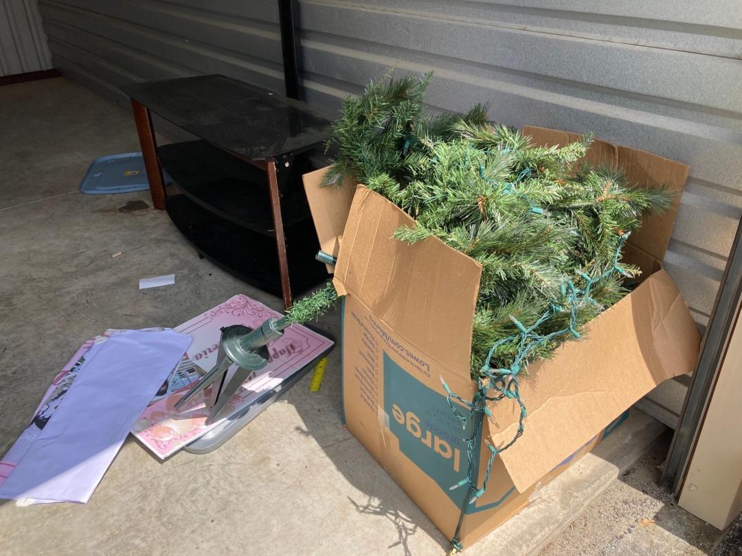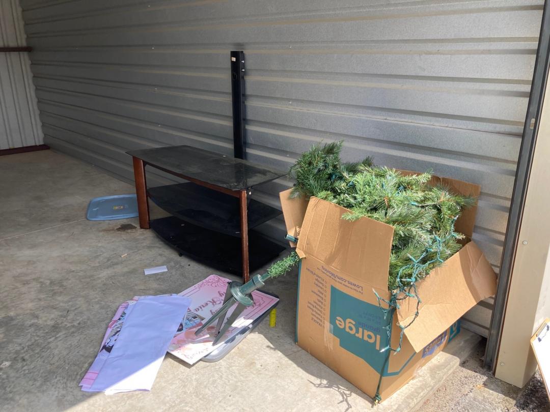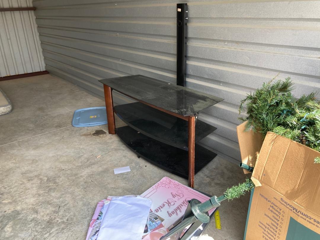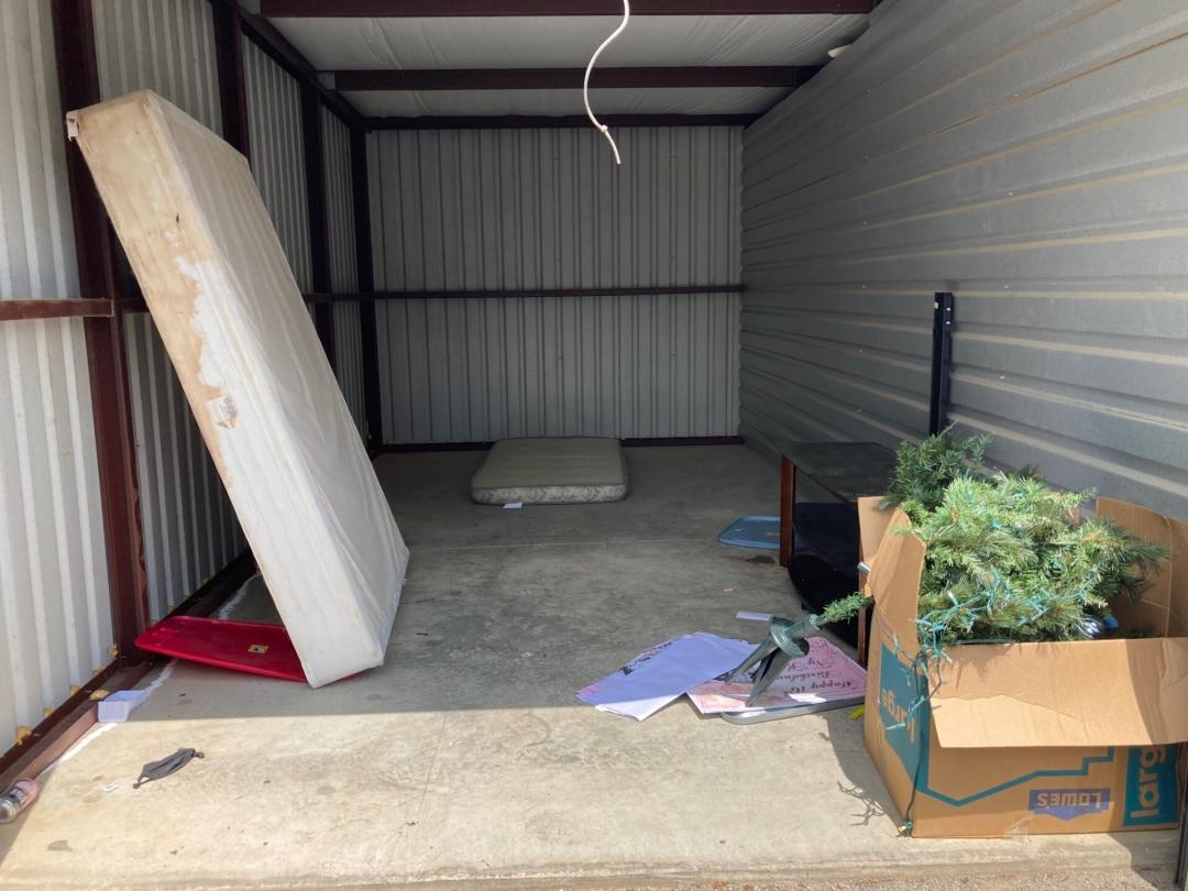 This unit appears to contain…Mattresses,Box Springs,TV Stand,Misc. Boxes,Misc. Items