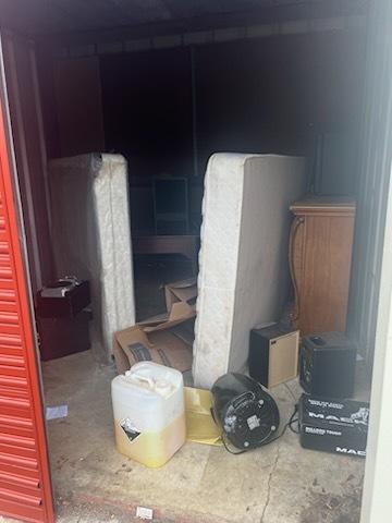 This unit appears to contain…Mattresses,Box Springs,Tables,Plastic Bags,Plastic Containers