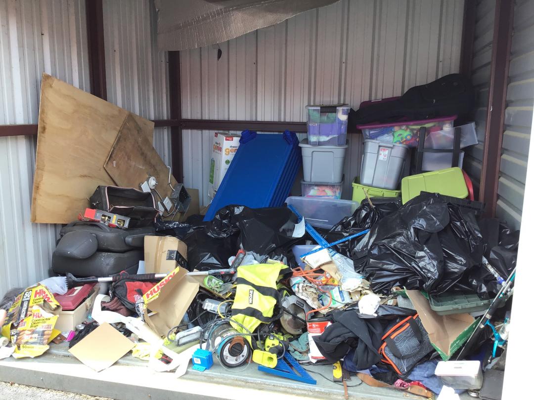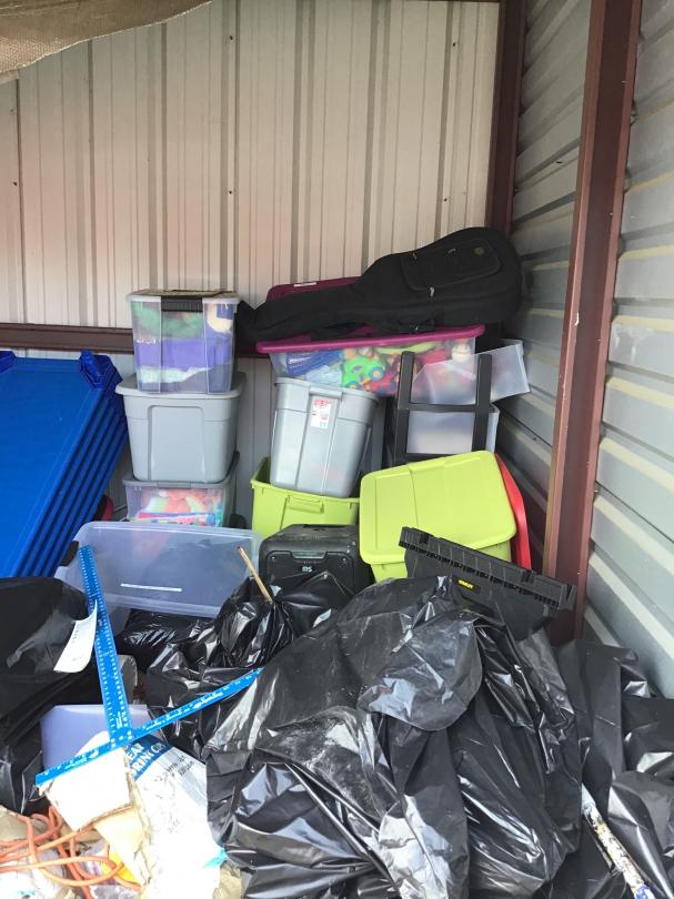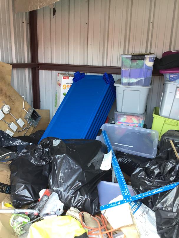 This unit appears to contain…10x10x9 Drive Up 1st Floor Outside Level No Climate, unit appears to have power tools, fishing poles, totes, toys, diaper genie, toddler sleep cots, speaker and paint