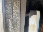 This unit appears to contain…Christmas decor, Halloween decor, chair, table, misc.