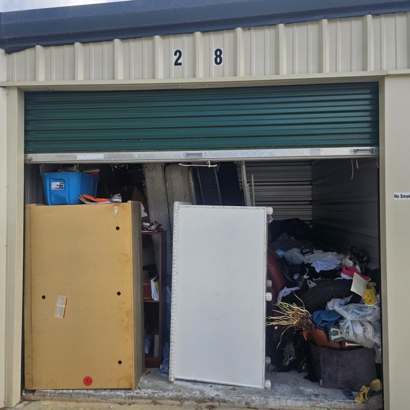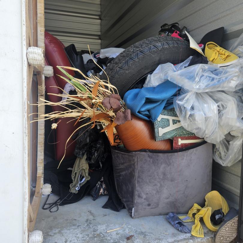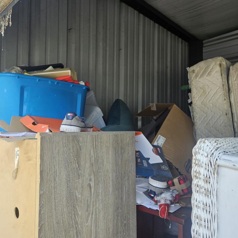 This unit appears to contain…couches,shelving,mattress,box spring,dressers/armoire,chairs,decor,plastic bags, plastic containers,clothing