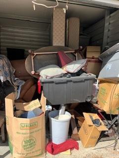This unit appears to contain…Couches,Chairs,Tables,Plastic Containers,Misc. Boxes,Misc. Items